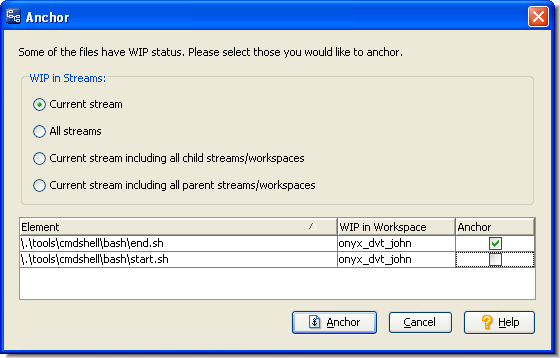 active in the workspace (places them in the workspace’s default group), without modifying them. Anchor creates a new version in the workspace stream. This new version, called a