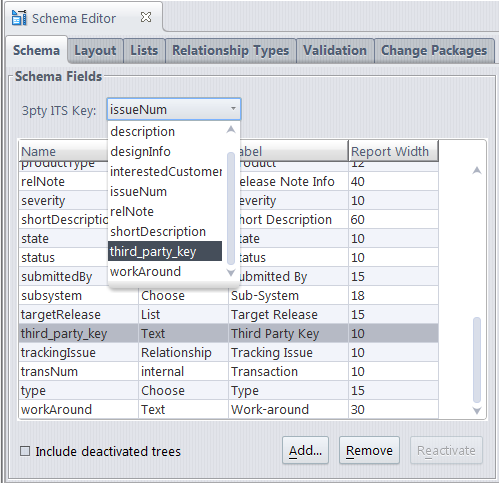 Typing an Identifier when using a Third-Party ITS -- If a field other than the default issueNum is specified as the 3pty ITS Key (on the Schema Editor’s Schema subtab), specifying issue records by typing their identifiers can lead to errors: if multiple issue records have the same identifier, AccuRev automatically adds the promoted version(s) to just one of those records — perhaps not the one you intended.