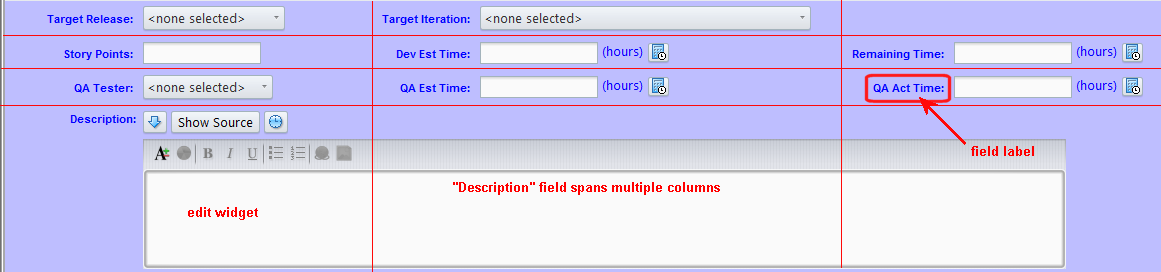 Actual Time). On the Issue form, the field-label and the corresponding edit-widget will appear, side by side, at this position. You can also expand a yellow box to make it span two or more columns.