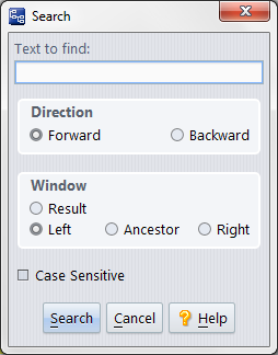 For example, "2 of 4" might mean "you are currently in My changes mode, and you are currently at the 2nd of 4 such changes".In addition to navigating among the change/conflict sections, you can search for any text string in any pane, using theSearch toolbar button (keyboard shortcut: Ctrl-S).