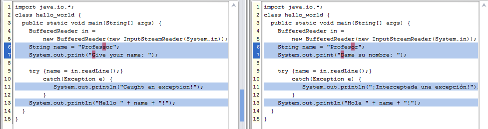 At this point, you make more edits to intro_example.java in order to create a Spanish version of the file and you once again promote the file against issue 5.