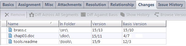 The change package for this new issue now includes multiple entries for one of the files, due to the introduction of multi-segments -- the ability of AccuRev change packages to track and correctly handle versions that are not necessarily related to the current changes.