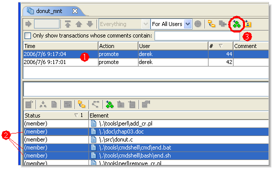 2. This is similar to the previous case: instead of loading a Change Palette with all the versions created in a transaction, you load selected versions from a transaction.