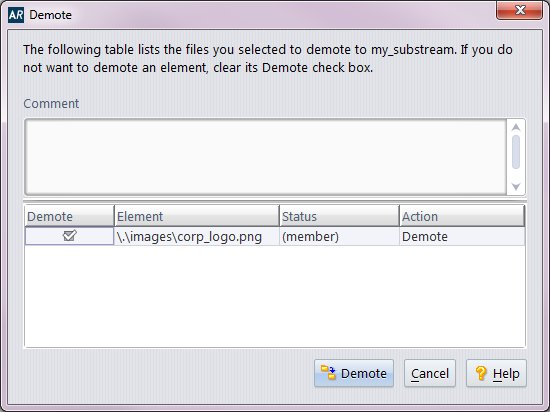 3. In the Comment field, optionally enter a reason for the demote operation.Tip: AccuRev retains the comment you entered from your most recent demote.