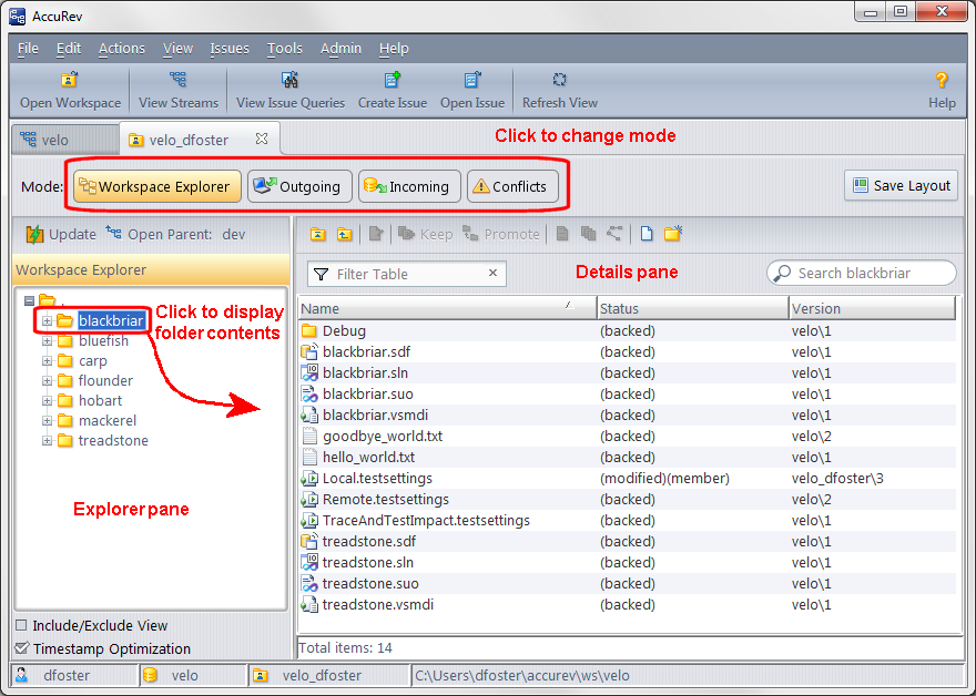 Searching the Workspace on page 63 for more information.) AccuRev refreshes the Details pane each time you select a folder in the Explorer pane.