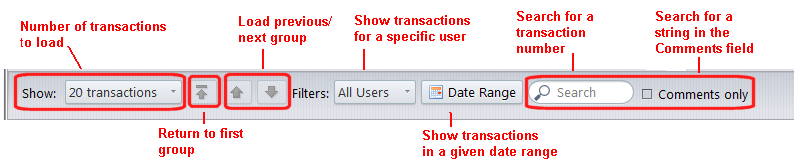 Display a Particular User's TransactionsTo restrict the display to one user's transactions, use the User Filter list box. Select For All Users to turn off by-user filtering.