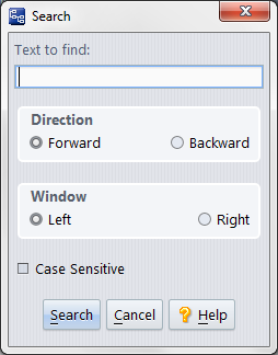 For a text file that contains hundreds or thousands of lines, there may be only a few difference sections (added, deleted, or revised), separated by large unchanged sections. The Diff tool provides both navigation buttons on its toolbar and a difference map for direct access to a particular difference section.Whenever you use one of these buttons to jump to a particular difference section, the Diff tool remembers it as the current difference and highlights the lines numbers in both panes.(Keyboard shortcut: Ctrl+F) Search for a text string, in either of the versions being compared. A dialog appears, in which you define the search.After you've defined a search, you can perform it again, using the command File > Search Again on the GUI window's main menu, or its keyboard shortcut: function key F3.To the right of each pane, there's a difference map that shows the relative locations and sizes of all the difference sections. The maps use the same color-coding (see Color-Coding of the Contributor Versions on page 217) as the difference sections themselves. Click on any colored area within a map to scroll both panes directly to the corresponding difference section. (Actually, you can click anywhere in the difference map; the panes will scroll to that location, even if the files are identical there.)If you use a difference map, but then want to scroll back to where you were before, click theCenter Diff toolbar button.