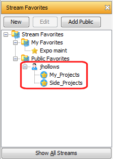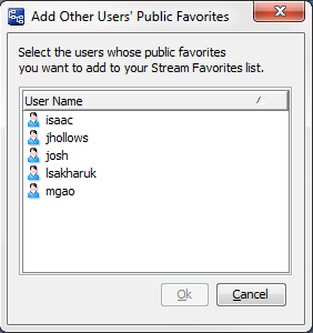 2. In the Stream Favorites panel, click the Add Public button.Tip: Use Crtl+ and Shift+ click to select multiple users at the same time.