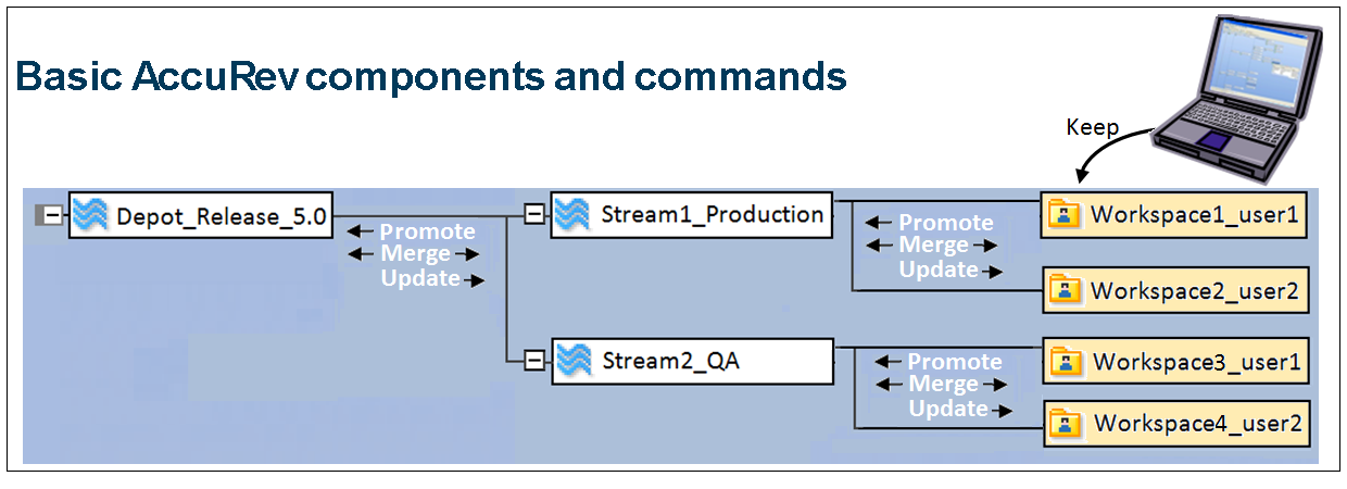 AccuRev components permit developers to work privately, share code, develop code serially, lock files if necessary, and protect a code base. The basic AccuRev components are: