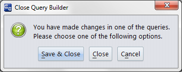 (equivalent: double-click the query name) Executes (or re-executes) the selected query, displaying the results in the Query Results pane. You don't need to run this option when you revise a query in the Edit Query window -- AccuWork automatically executes the revised query and updates the results table.The <username> directory in the query storage pathname causes the private queries for each user to be stored separately.If you try to close a Queries tab in which you've made changes to one or more queries, but haven't run Save all queries, AccuWork offers to perform the save.Create a new query or revise an existing one, using the Edit Query window.(Context menu only) Create a private query that is a copy of the selected private or public query. The new query is initially named "Copy of ...", but you can change the name.(Context menu only) Change the position of the selected query in the Query List pane. Note that your own queries (both private and public) are always listed above other users' public queries.(Context menu only) Remove the currently selected query. The deletion does not take effect until you run Save all queries. If you close the Queries tab without saving your queries, the "deleted" query will still exist the next time you open the Queries tab. This may or may not be the right thing to do: closing the Queries tab without saving also discards changes you've made to other queries since the most recent save.(Context menu only) Designates one of your private queries to be -- or to stop being -- your default query for this depot. (This is your default query -- another user can set one of his own private queries to be his default query.)The query name is redisplayed in bold-italic to indicate that it is the default query.
