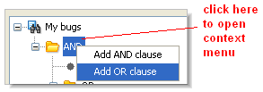 <value> parts of a simple clause. As you "fill in the blanks" to create simple clauses, you'll notice that AccuWork allocates new "Click here to add ..." placeholders, so that one is always available at each level of the query.