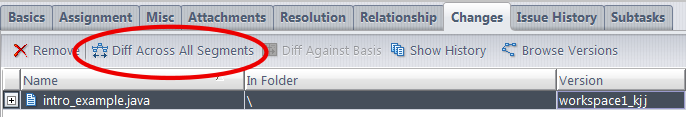 Note: Under some conditions, changes made to a file that were promoted against a different issue may appear when you perform a Diff Across All Segments operation. This can occur when the changes that were promoted against a different issue were contiguous to changes promoted against the same issue.