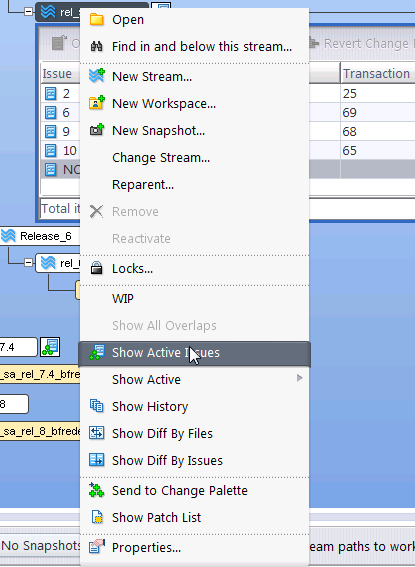 To examine the unaffiliated versions in detail and deal with them, you should right-click the stream and select Show Active Issues.