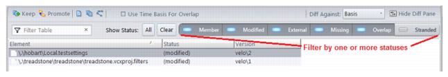 See AccuRev Element Status Reference for more information on AccuRev element statuses, their definitions, and how they occur.