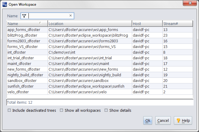 • For workspaces only: Click the Open Workspace button on the AccuRev toolbar to display the Open Workspace dialog box.