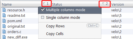 Initially, the rows of a table are sorted on one column (single-column mode). A direction icon in the header for that column indicates whether the sort is lowest-to-highest or highest-to-lowest.