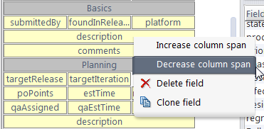 Actual Time). On the Issue form, the field-label and the corresponding edit-widget will appear, side by side, at this position. You can also expand a yellow box to make it span two or more columns.
