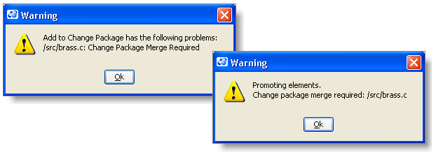 AccuRev signals this situation with a “change package merge required” message, and cancels the current operation.