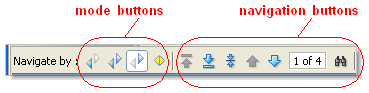 • If theMy changes mode button is selected, the navigation buttons traverse just the change sections in which the right-hand (or lower) contributor differs from the closest common ancestor.