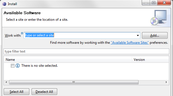 Otherwise, follow this procedure to add the AccuRev update site to the list of sites that Eclipse can contact: