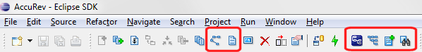 5. Restart Eclipse. Several new buttons appear on the AccuRev perspective toolbar as shown in the following illustration: