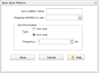 3. In the Sync pattern name field, enter a name for the synchronization pattern.Tip: Consider using an intuitive name for the synchronization pattern. For example, if you are creating a synchronization pattern to synchronize defect issue types, you might name the synchronization pattern defects.