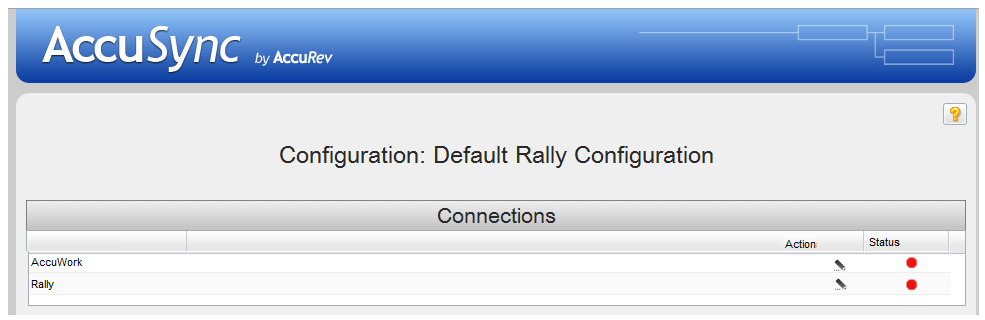 2. In the Connections table Action column, click the Edit Connection button () for the AccuWork connection.