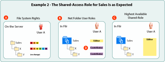 Filr assigns User A the Editor user role for the Sales Net Folder.