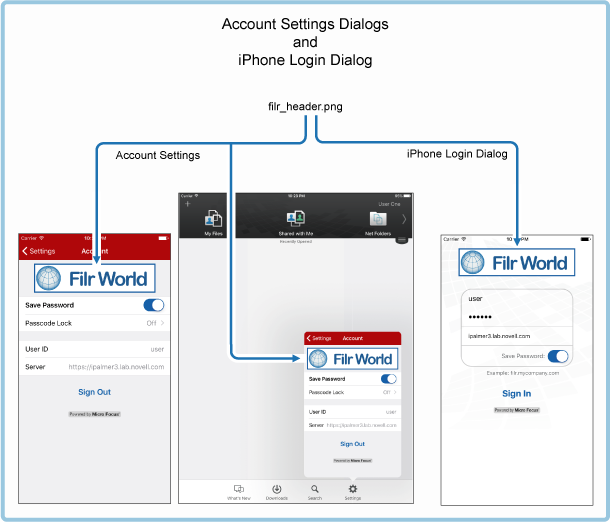 To brand the account settings dialog and the login dialog for iPhone devices, create a filr_header.png and include it in the zip file.