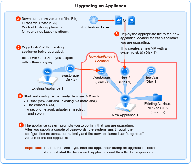 Copying each appliance’s disk is at the heart of the upgrade process because it uses the corresponding old