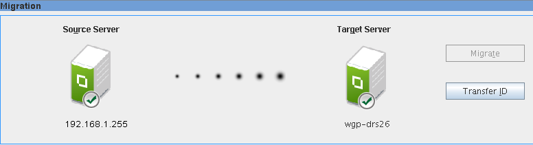 On successful authentication of the source server and target server, the IP address or the DNS name of the servers are displayed below the server icons.