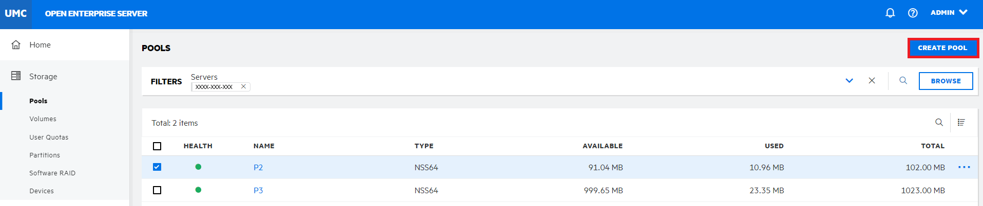 Specify the device space up to the free space available on the devices for the pool, and then click NEXT.