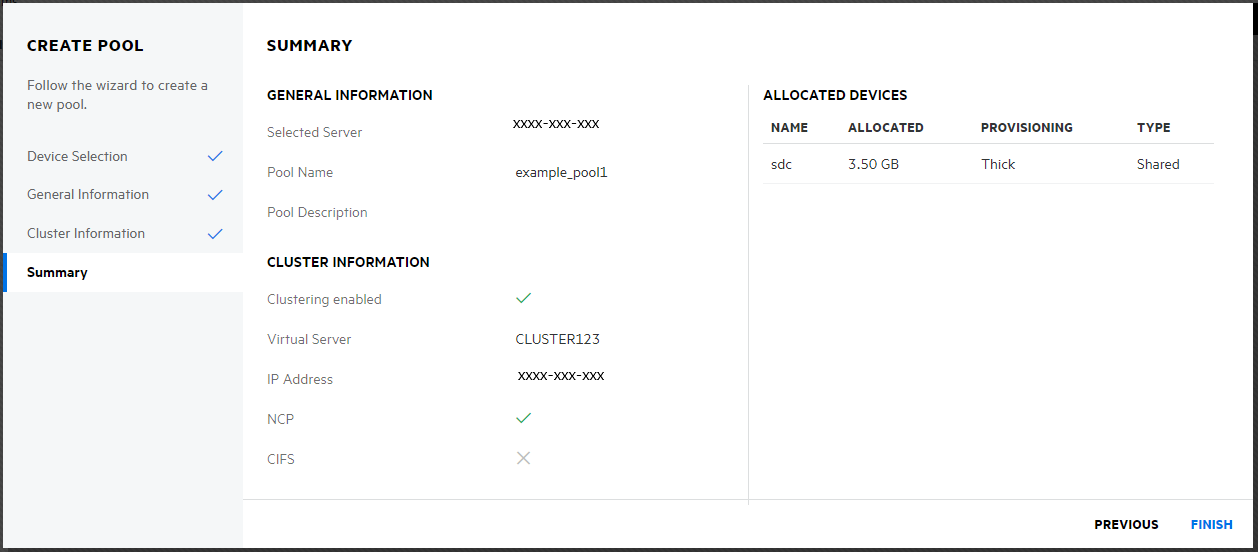 If the selected device type is shared, on the CLUSTER INFORMATION page, specify the details as required, and then click NEXT.