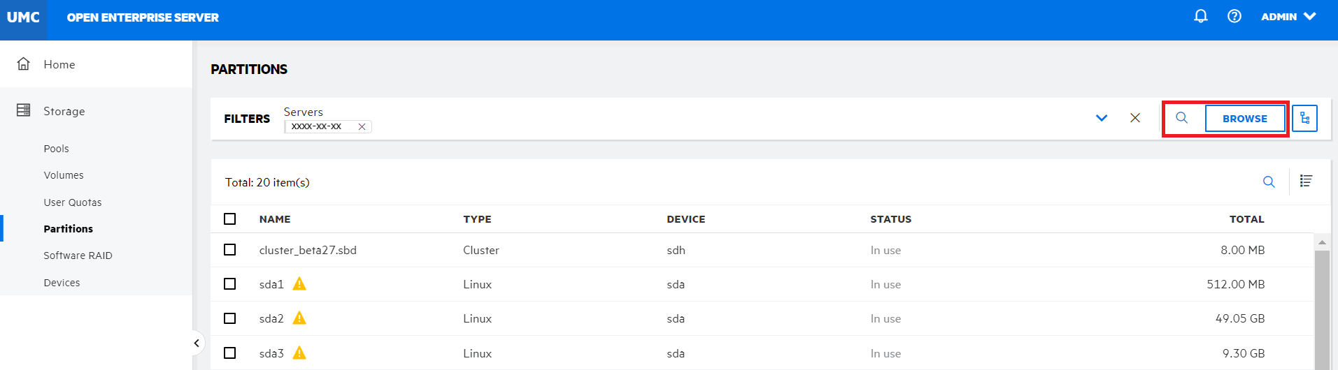 The actions that are performed on partitions are specific to partition type and vary depending on the type of partition selected.
