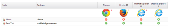 - Lorsque l'exécution est achevée, cliquez sur le lien heure de début. Vous pouvez voir les résultats pour chaque test et chaque configuration.