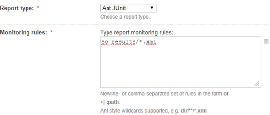 2. 监视规则字段中指定脚本将文件写入的位置。 例如 sc_results/*.xml