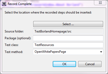 • Wenn in Eclipse keine Silk4J Testklasse geöffnet ist, werden die aufgezeichneten Aktionen in eine neue Silk4J Testklassendatei geschrieben.