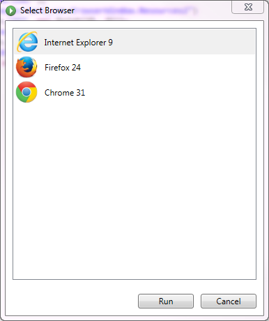 2. Wählen Sie auf dem Dialog Select Browser den Browser aus, mit dem Sie den Test wiedergeben möchten.