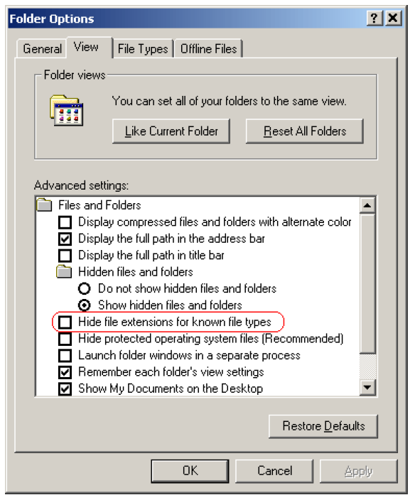 Folder Options dialog box, as shown in the screenshot below. Otherwise Windows may show a file name such as