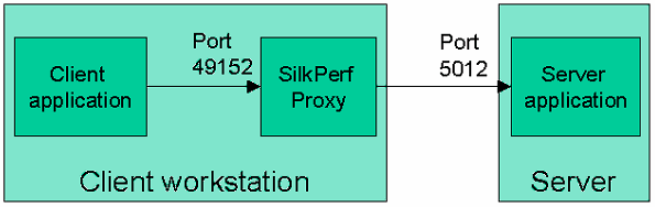 もうひとつの解決策は、TCP/IP プロキシ Recorder を使用することです。前提条件として、クライアント アプリケーションが接続するサーバー名と TCP ポート番号をコントロールできる必要があります。通常、これらの設定は、レジストリまたは設定ファイルで見つけることができます。そして、トラフィックが確実に Silk Performer Recorder にルートされるように、Silk Performer とクライアント アプリケーションを設定します。